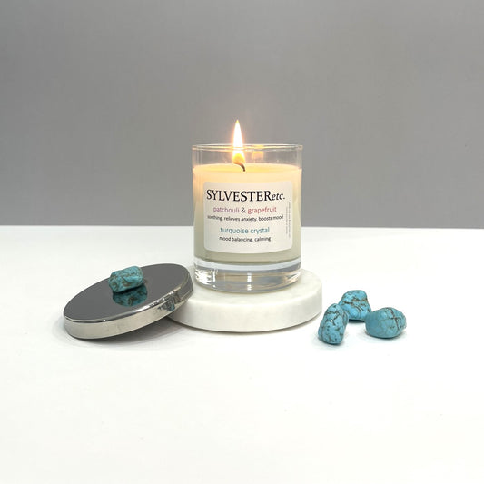 Patchouli & Grapefruit Turquoise Crystal Candle